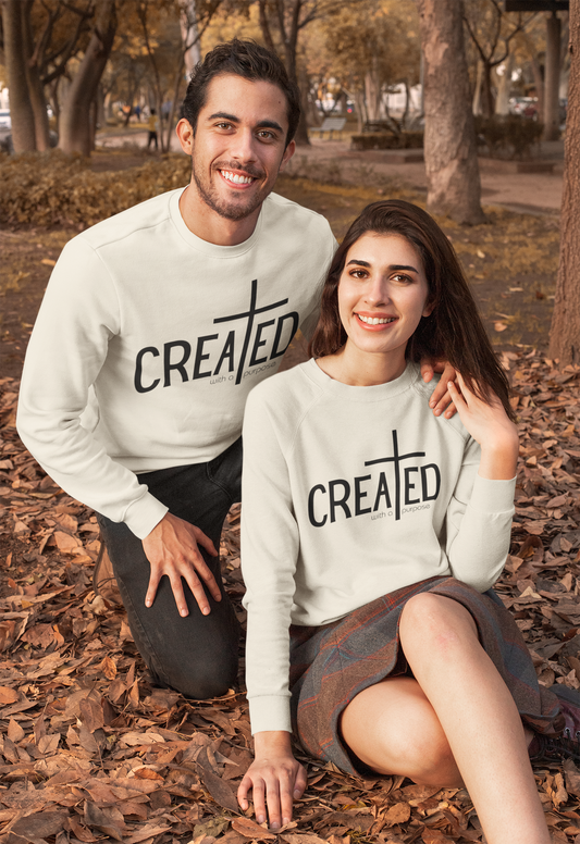 Created With A Purpose Crewneck Pullover Sweatshirt | God, Church, Loved By God, Perfect Gift for Her or Him